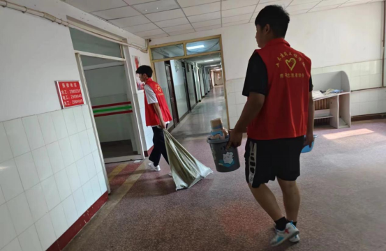 公司志愿者分成男女两组,分别前往毕业生所在的宿舍。他们穿梭在宿舍楼层与宿舍间,打扫卫生、整理物品、搬运行李,他们用实际行动表达了对学长学姐们最真挚的祝福。志愿者们手里的行李所承载的是三年的青春,他们以最饱满的热情、最细致的态度、最美丽的姿态,搬运起这一份份沉甸甸的回忆。