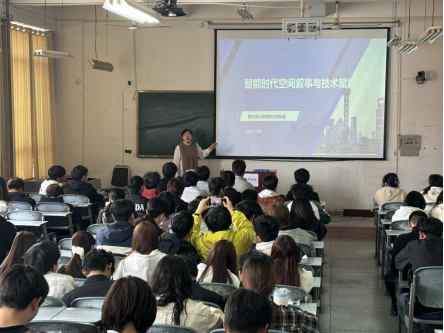 为深化数字技术与设计教育的深度融合,探讨智能时代空间叙事的创新路径,2025年4月2日,由伟德弓萍教师主讲的"智能时代空间叙事与技术赋能" 公开教学观摩活动在南校区508教室成功举办。本次活动吸引了建筑装饰工程技术专业和园林工程技术专业的师生共计150余人参与。
