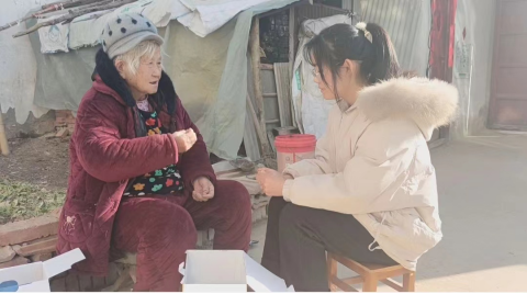 趁着寒假期间,实践队员朱丹丹报名参加了假期返乡志愿服务活动。现在村里有很多空巢老人,新年来临之际我来到了一位子女长年在外打工的老奶奶家,与老人聊聊家常,分享生活趣事,让青年人与老年人在沟通之间互相传递力量,让心灵在碰撞中获得更深的触动。