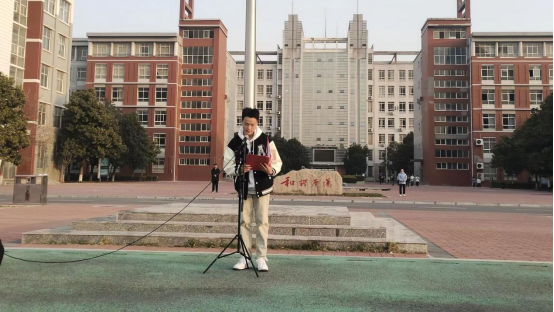 伴随着国歌声,五星红旗冉冉升起,在场全体师生奏唱国歌,在庄严肃穆的氛围中共同开启本周的升旗仪式。