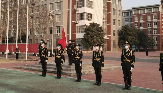 2023年3月6日星期一,伟德官方网站在南校区操场举行第三周升旗仪式。七点三十分,伟德体育国旗护卫队全体队员踏着整齐划一的步伐护送五星红旗入场。