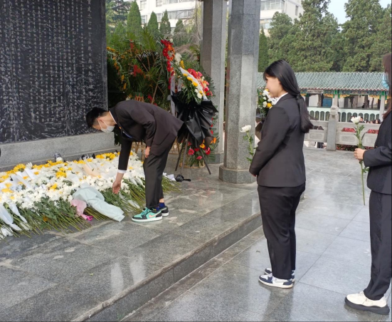 祭扫活动中,青年志愿者统一着装,手持鲜花,祭奠先烈。在烈士纪念碑前,带队老师和同学们列队默哀一分钟,默哀结束后同学们依次上前为已逝的革命烈士鞠躬并献花,告慰烈士忠魂,寄托对烈士的无限哀思。