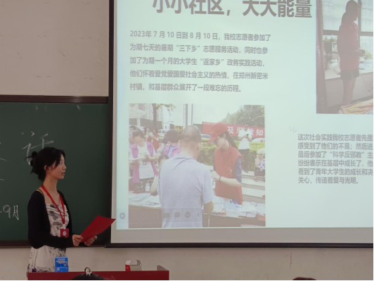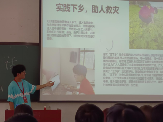 9月18日,在一教509教室举办了此次座谈会,本次“三下乡”,我们以“乡村振兴走基层,青春共聚正当时”为主题,融入基层,感受基层。会上,同学们分别从实践活动与成果展示、个人思想感悟等方面,介绍了在暑期社会实践中的丰富经历和收获。