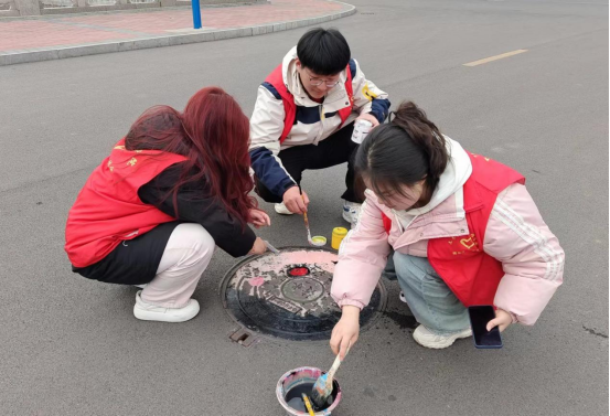 在伟德体育校公路上,土建志愿者们身穿红色志愿者马甲,手拿绘画工具,游走在校园之间,顺着他们的足迹走下去就会发现,校园中的井盖都变成了“景盖”,土建志愿者们以井盖为布、青春为笔让平日里并不引人注目的井盖从此刻开始披上了宣传“雷锋精神”的外衣,以绘画作品的形式向全校师生传递“学雷锋,好榜样”的青春正能量。